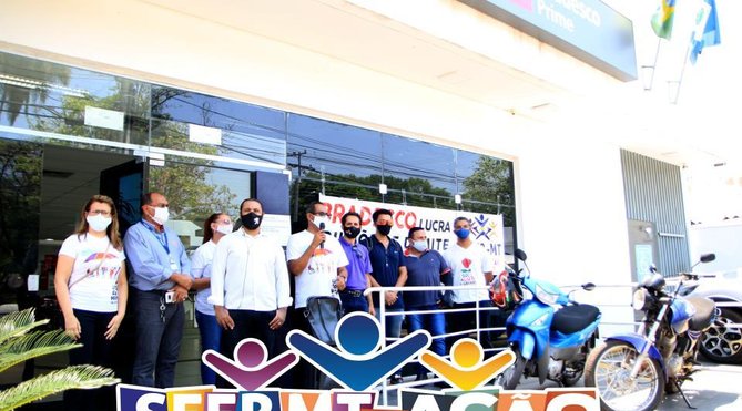 Na manhã desta quinta-feira, a manifestação aconteceu na porta da agência do Bradesco, localizada, na Rua Marechal Mascarenha de Moraes, no Bairro Duque de Caxias.