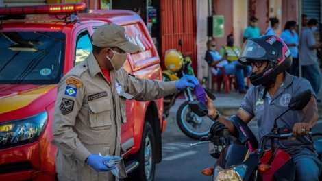 Durante a semana passada, o Corpo de Bombeiros distribuiu máscaras de tecido à população, em vários pontos de Cuiabá, cidade que mais registrou casos de Covid-19, com 64 confirmações.