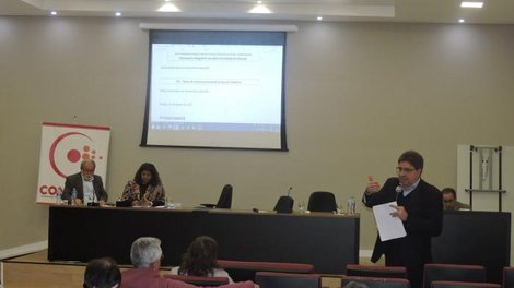 Na primeira mesa do Seminário do Comando Nacional dos Bancários, que acontece nesta segunda-feira (7) na sede da Confederação Nacional dos Trabalhadores do Ramo Financeiro (Contraf-CUT), o assessor jurídico da Central Única dos Trabalhadores (CUT) e da Federação dos Bancários do Centro Norte (Fetec-CUT/CN), José Eymard Loguercio, fez uma apresentação sobre os principais pontos da reforma trabalhista que atingem os direitos dos trabalhadores e causa impactos na ação e na estratégia sindical.