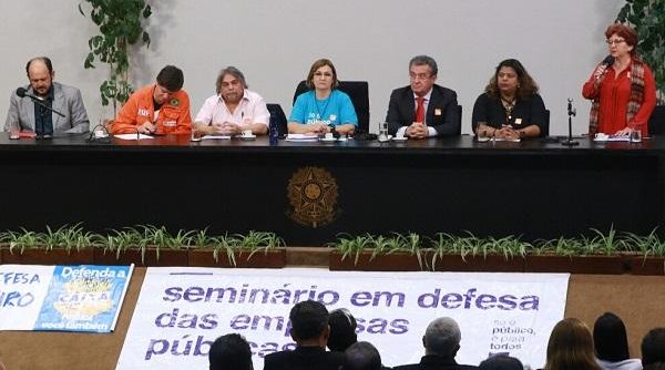 Brasília - Foi realizado nesta terça-feira (8), na Câmara dos Deputados, em Brasília (DF), o Seminário e Ato em Defesa das Empresas Públicas. Na ocasião, foi aprovada uma Carta-Compromisso a ser encaminhada para os candidatos que vão disputar as próximas eleições, em defesa das estatais. Também ocorreu mais um lançamento do livro “Se é público, é para todos”. Na mesma manhã, aliás, audiências públicas debatiam dois assuntos correlatos: as regras para a venda do petróleo da União obtido nos contratos de partilha e a privatização da Eletrobras.