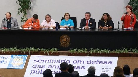 Brasília - Foi realizado nesta terça-feira (8), na Câmara dos Deputados, em Brasília (DF), o Seminário e Ato em Defesa das Empresas Públicas. Na ocasião, foi aprovada uma Carta-Compromisso a ser encaminhada para os candidatos que vão disputar as próximas eleições, em defesa das estatais. Também ocorreu mais um lançamento do livro “Se é público, é para todos”. Na mesma manhã, aliás, audiências públicas debatiam dois assuntos correlatos: as regras para a venda do petróleo da União obtido nos contratos de partilha e a privatização da Eletrobras.