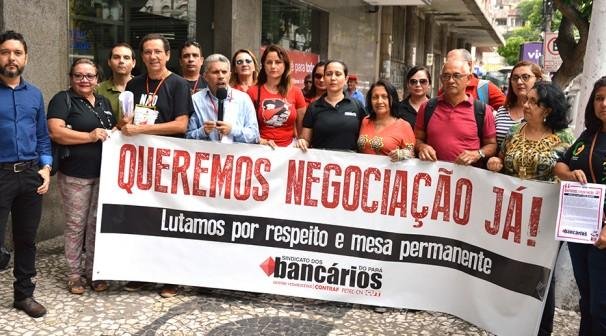 Durante a manifestação, uma comissão de dirigentes sindicais foi até à presidência do Banpará para reiterar o ofício que solicita a retomada da mesa permanente com as pautas apresentadas pela categoria a serem debatidas.