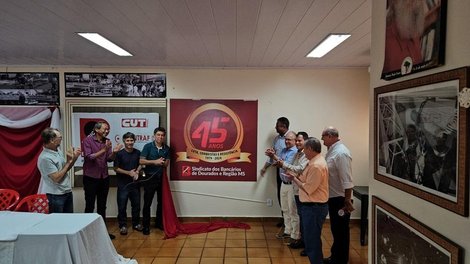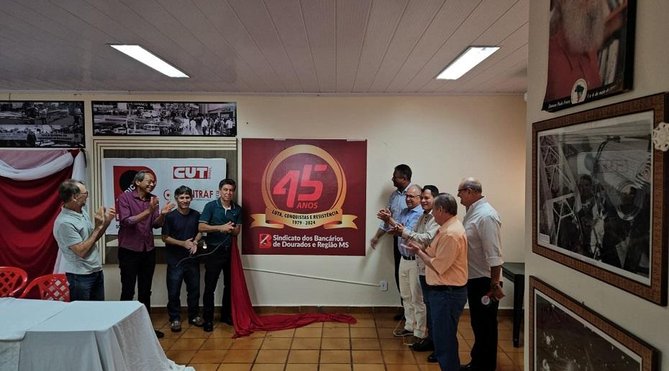 Para comemorar os 45 anos de fundação do Sindicato dos Bancários e Trabalhadores do Ramo Financeiro de Dourados e Região MS, a serem completados neste domingo, 20 de outubro, a diretoria da entidade realizou, na manhã desta sexta-feira (18), uma cerimônia que reuniu os atuais dirigentes, ex-dirigentes e representantes de outros seguimentos do movimento sindical, social e político, todos ligados à defesa dos direitos dos trabalhadores.