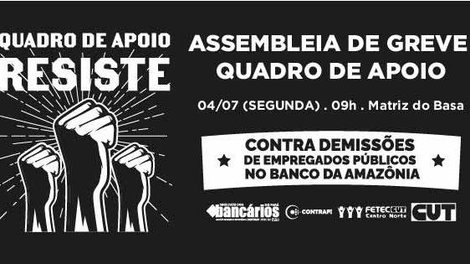 O quadro de Apoio do Banco da Amazônia está em greve desde o último dia 28 de junho, em resposta às demissões em massa deste segmento conduzidas pela atual direção da instituição. E para a próxima segunda-feira, dia 4 de julho, 9h da manhã, o Sindicato dos Bancários do Pará convoca todos os bancários e bancárias do QA para uma assembleia, em frente à Matriz do Basa, para deliberar sobre os rumos do movimento paredista.