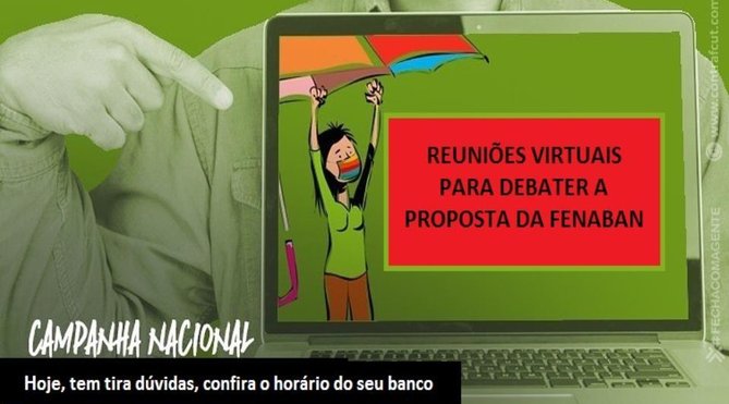 A direção do Sindicato dos Bancários de Mato Grosso (Seeb/MT) convoca Reuniões Virtuais para esclarecer a categoria sobre as Propostas apresentadas pela Fenaban (Federação Nacional dos Bancos), durante a rodada final das negociações da Campanha Nacional dos Bancários 2020.
