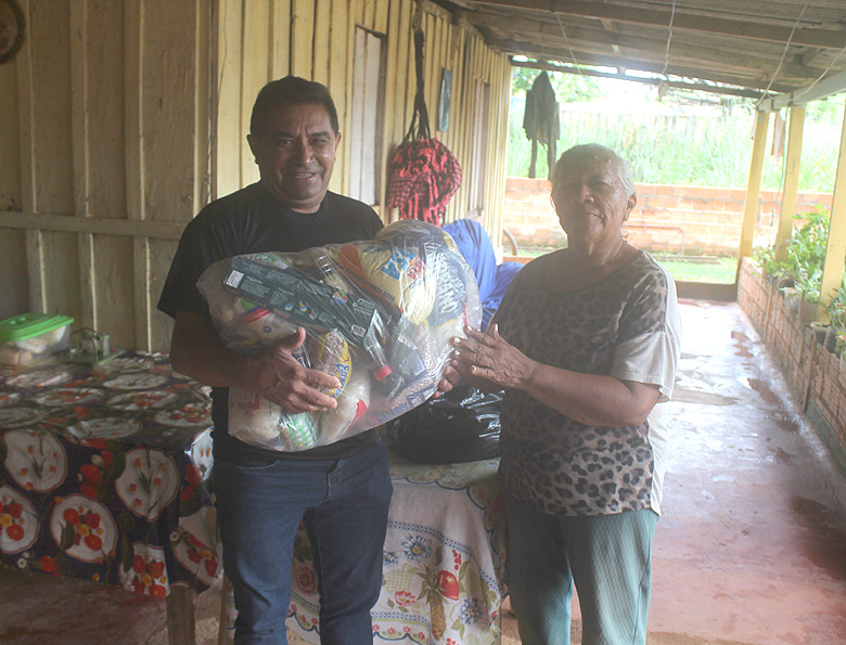 Ainda na manhã de hoje o Sindicato também fez a doação de uma cesta-básica à senhora Rita de Cássia, 64 anos, aposentada moradora do bairro Jardim Santana, zona Leste da cidade.