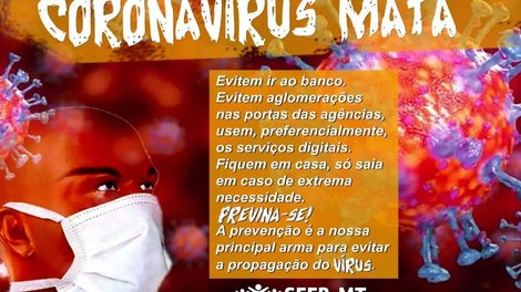 O Sindicato dos Bancários de MT reforça o pedido dos bancários, que têm presenciado um aumento da movimentação nas agências, mesmo com as recomendações dos órgãos de saúde para que as pessoas fiquem isoladas em casa. A principal função do isolamento social é evitar que as pessoas circulem pela cidade e sejam contaminadas.