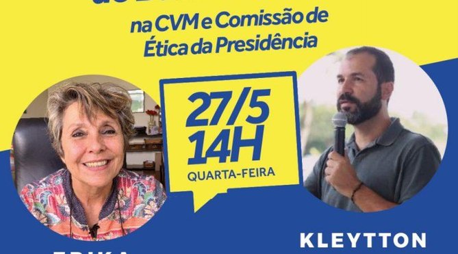 O presidente do Sindicato, Kleytton Morais, e a deputada federal Erika Kokay (PT-DF) irão ingressar, nesta quarta-feira (27), às 14h, com representação contra o ministro da Economia, Paulo Guedes, por agressões contra o Banco do Brasil, feitas durante reunião ministerial do dia 22 de abril. O documento será protocolado na Comissão de Ética Pública da Presidência da República e na Comissão de Valores Mobiliários (CVM).