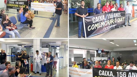 Brasília - Poucos dias após anúncio da direção da Caixa, pela imprensa, de que irá implantar um novo plano de demissão voluntária (PDV) que pretende desligar 10 mil funcionários, o Sindicato deflagrou nesta segunda-feira (9), semana em que a empresa completa 156 anos, uma ampla mobilização em defesa do banco e dos seus empregados, intensificando a luta contra mais esse ataque do governo Temer.