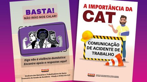 O Sindicato dos Bancários e Trabalhadores do Ramo Financeiro de Rondônia (SEEB-RO) lançou, nos últimos dias, duas publicações que abordam temas importantes para os trabalhadores do ramo financeiro, que são a cartilha sobre a Comunicação de Acidente de Trabalho (CAT) e a cartilha sobre o projeto “Basta! Não Irão Nos Calar!”.
