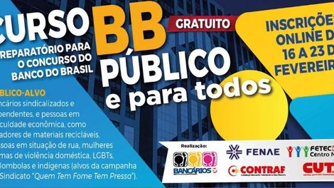 Para o presidente do Sindicato, a realização do “Curso BB Público e para Todos” “é mais uma iniciativa que levamos aos nossos associados e seus dependentes e, ao mesmo tempo, uma maneira de enfrentamento às injustiças, ao promovermos oportunidades às pessoas em situação de vulnerabilidade econômica e grupos historicamente excluídos, para que tenham condições de concorrer”.