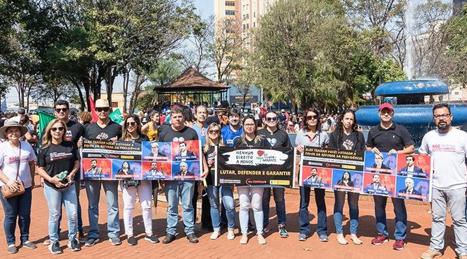 Campo Grande MS - Nesta terça-feira (dia 13), o Sindicato dos Bancários de Campo Grande-MS e Região participou do Dia Nacional de Mobilizações contra a Reforma da Previdência e em defesa da educação. Em Campo Grande, os manifestantes se reuniram na Praça Ary Coelho e protestaram contra os cortes nos investimentos da educação e a proposta de alterações da Previdência. Durante a concentração, os manifestantes fizeram panfletagem para informar a população sobre os retrocessos das medidas do atual governo.