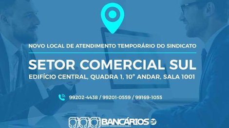 Brasília - Em razão da reforma por que passará grande parte da estrutura do primeiro piso do prédio do Sindicato, o setor de Atendimento da entidade passará a atender os bancários presencialmente no Setor Comercial Sul a partir da próxima segunda-feira (27).