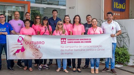 Esta mobilização faz parte de uma série de atividades promovidas pelo sindicato. Na próxima quarta-feira, dia 24, às 19h, o SEEBCG-MS realiza uma palestra com o médico mastologista Dr. Naildo Alonso Faustino, com orientações para a prevenção do câncer de mama. A palestra acontece na sede do sindicato, na Rua Barão do Rio Branco, 2.652.