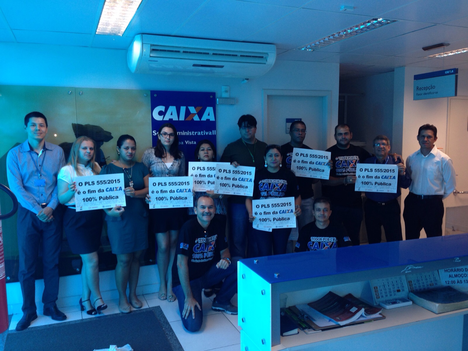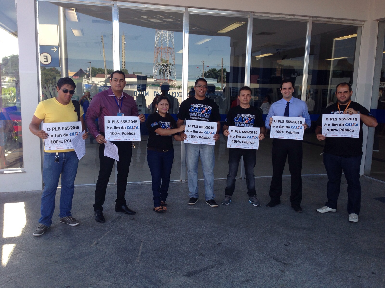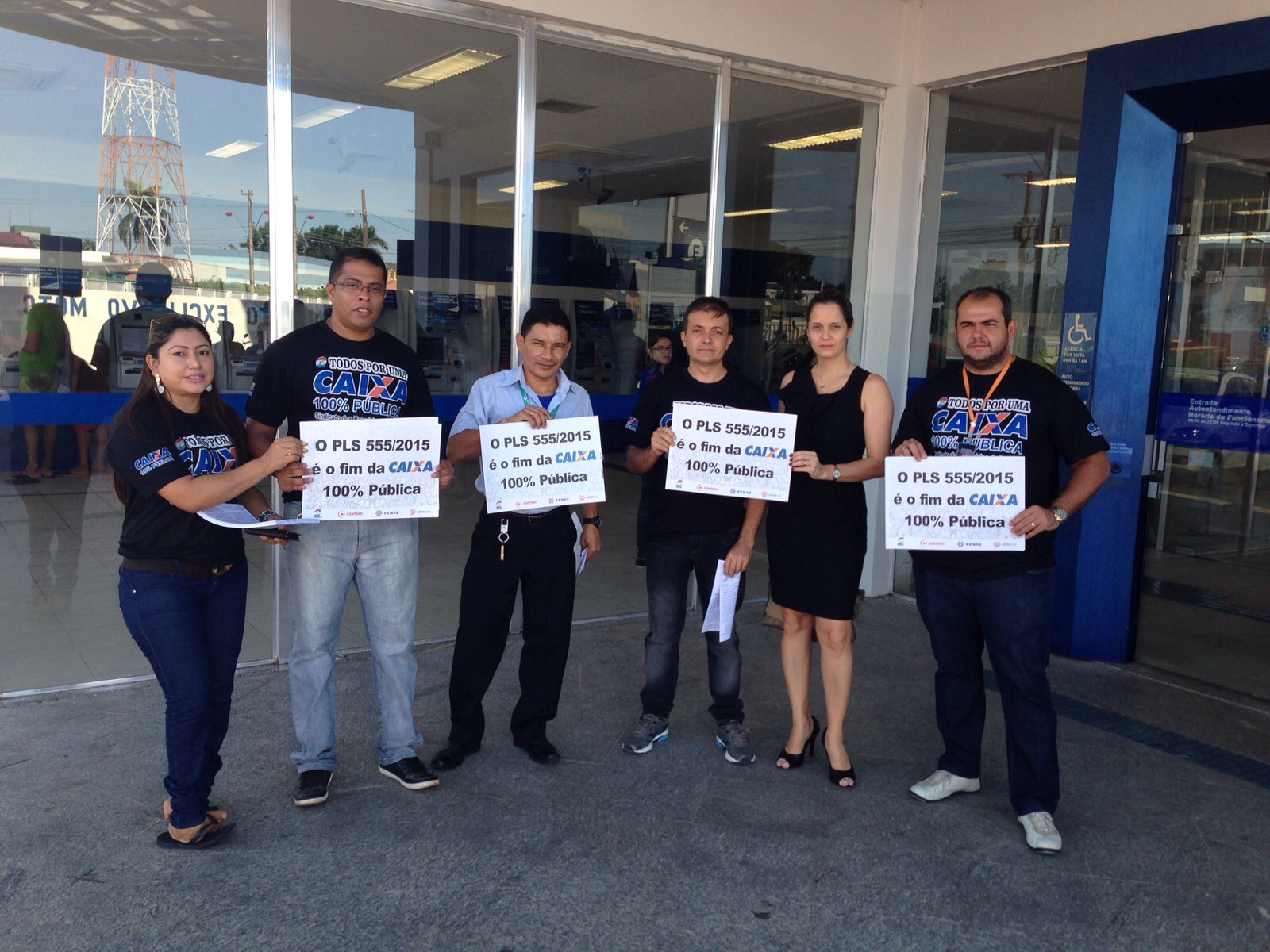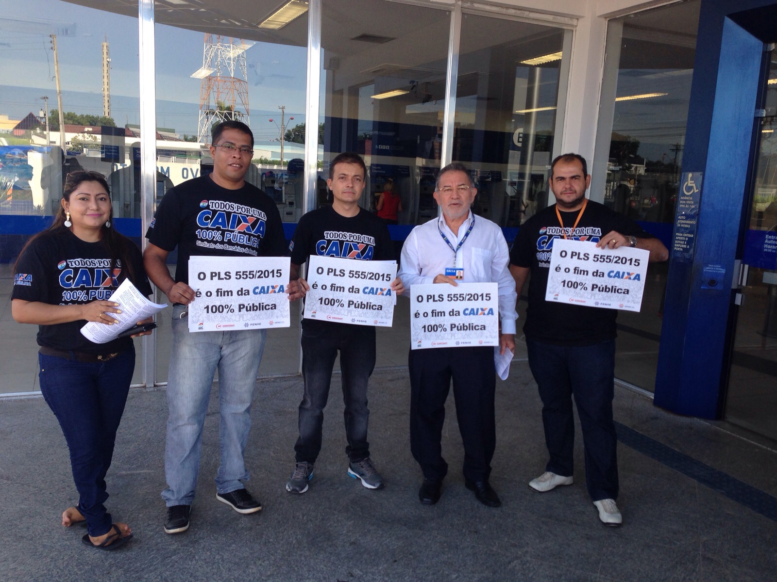 Boa Vista RR - Com o objetivo de mobilizar os trabalhadores da Caixa Econômica Federal, na tentativa de barrar o projeto, que trata do Estatuto das Estatais e ameaça empresas públicas federais, estaduais e municipais, o Sindicato dos Bancários de Roraima, através de seus diretores, participaram do Dia Nacional de Luta em Defesa da Caixa 100% Pública e contra o PLS 555/2015.