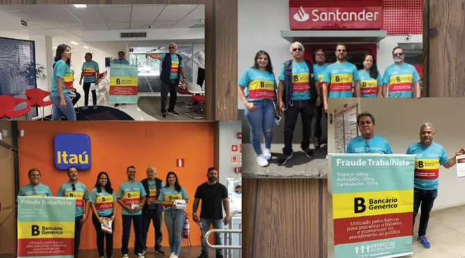 A necessidade de alertar o que vem acontecendo no Santander com relação ao bancário genérico foi endossada pelo diretor da Fetec-CUT/CN José Garcia. “Hoje, o banco demite o funcionário e o contrata por uma outra empresa para fazer o mesmo serviço de bancário, porém escapando do que prevê a nossa Convenção Coletiva de Trabalho (CCT). Precisamos frear essa manobra, para que outros bancos não a copiem. Mas, o Sindicato está sempre na luta e de olho nessas irregularidades”, avisa o dirigente.
