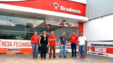 Belém PA - Nesta quarta-feira (23), bancários e bancárias do Bradesco realizam em todo país diversas mobilizações em defesa do emprego e melhores condições de trabalho. No Pará, o Sindicato dos Bancários marcou a data com o fechamento da agência Marituba, a única agência bancária de toda a região metropolitana de Belém que não possui porta giratória de segurança, equipamento este que é obrigatório pela Lei Estadual nº 7.013/07. Inclusive esta agência foi vítima de assalto no último dia 14 de novembro.