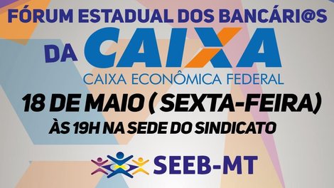 Cuiabá MT - Confira o vídeo gravado pelo presidente do Sindicato dos Bancários de Mato Grosso (Seeb/MT), Clodoaldo Barbosa, reforçando o convite para o Fórum Estadual dos Empregados da instituição que será realizado na sexta-feira, dia 18 de maio, às 19h, no Sindicato, localizado na Rua Barão de Melgaço, 3190, em Cuiabá.