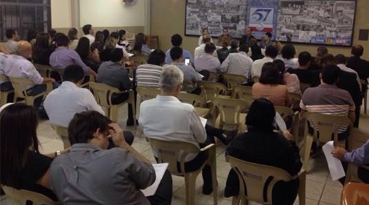 Campo Grande MS - Na último dia 25 de maio, o Sindicato dos Bancários de Campo Grande-MS e Região realizou uma reunião com funcionários do Banco do Brasil para esclarecer o andamento das ações coletivas quanto a jornada de seis horas diárias. Cerca de 60 bancários participaram desta reunião, que foi a segunda do ano realizada pela Secretaria de Assuntos Jurídicos do sindicato.
