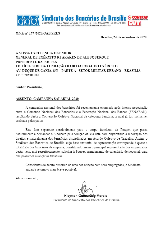 A Poupex, historicamente, segue o que foi acordado em mesa nacional com a Fenaban, e, até em função disso, sempre negocia após o fechamento da campanha nacional. A empresa, também já há bastante tempo, uma vez definido o acordo com a Federação dos Bancos, efetua o pagamento de verbas como abono e PLR baseadas no salário ainda praticado sem as correções, até que se assine o novo acordo, o que permite o pagamento retroativo a setembro das eventuais diferenças decorrentes do acordo. Na última semana, uma vez definida a campanha nacionalmente, inclusive com a CCT assinada, o Sindicato enviou ofício à empresa conclamando as partes para que procedam às negociações com vistas à construção do acordo coletivo específico.