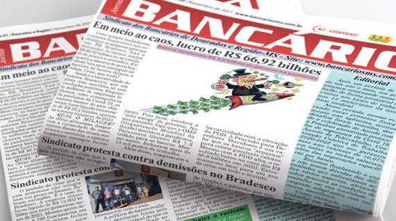 Depois de um período de suspensão imposto pela pandemia, o Jornal Bancário, jornal do Sindicato dos Bancários de Dourados e Região, voltou a ser publicado de forma impressa – agora com formato e período diferente: a ideia é produzir uma edição a cada dois meses, em vez da edição mensal como era antes da pandemia. A outra modificação está no formato, agora o jornal está em modelo de informativo (frente e verso), antes eram 4 páginas.