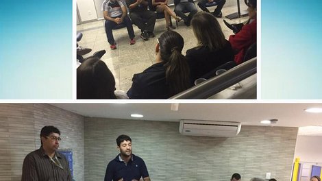 Na semana passada, foi a vez das agências SRTV (7/7) e Sudoeste (8/7). Os diretores Jefão Meira, do Sindicato, e Wescly Queiroz, da Fetec-CUT/CN, além de informarem, responderam também questões relacionadas às ações coletivas.