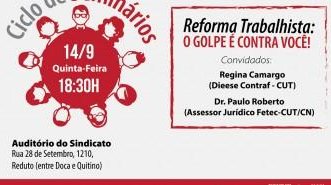 “Convidamos a companheira Regina, do Diesse, para demonstrar os impactos da reforma trabalhista na nossa Convenção Coletiva de Trabalho e o Dr. Paulo Roberto, da Fetec Centro Norte, para fazer um recorte mais geral sobre os impactos dessa medida para o conjunto da classe trabalhadora. Temos certeza que será um momento muito rico em informações e análises e esperamos contar com grande presença da categoria bancária e da sociedade em geral para esse debate que irá mexer profundamente com a vida dos trabalhadores e trabalhadoras desse país”, convida o presidente do Sindicato, Gilmar Santos.