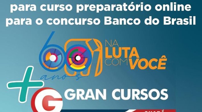 O Sindicato vai sortear 10 vagas para o “Curso BB público”, preparatório para o concurso público do Banco do Brasil, para a carreira administrativa – cargo escriturário, que será realizado em parceria com o Gran Cursos Guará. A prova está prevista para ocorrer no dia 26 de setembro, pela Fundação Cesgranrio. Podem participar bancários sindicalizados e seus dependentes.
