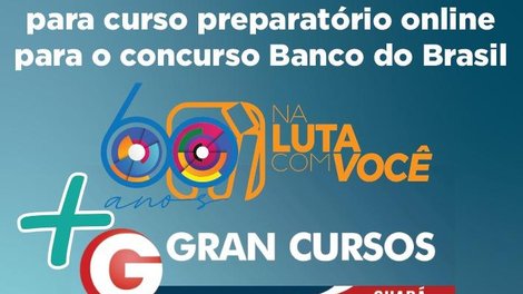 O Sindicato vai sortear 10 vagas para o “Curso BB público”, preparatório para o concurso público do Banco do Brasil, para a carreira administrativa – cargo escriturário, que será realizado em parceria com o Gran Cursos Guará. A prova está prevista para ocorrer no dia 26 de setembro, pela Fundação Cesgranrio. Podem participar bancários sindicalizados e seus dependentes.