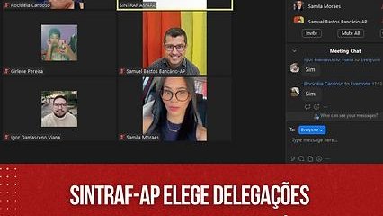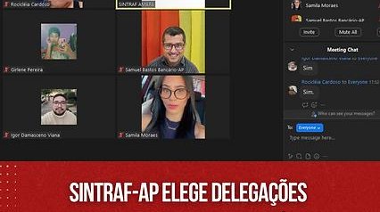 AvotaçãoocorreudeformahíbridanasededoSINTRAF-AP,atravésdaplataformaZoomeelegeuachapaporunanimidade.Alémde3delegadosnatos:SamuelBastos(BancodoBrasil),EdsonGomes(Caixa)eSamilaMoraes(Bradesco),forameleitosmais6delegados(as):