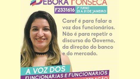 Os bancários do Banco do Brasil concluem nesta quinta-feira 31 de janeiro a eleição em segundo turno de quem será o Conselheiro de Administração Representante dos Funcionários (Caref) no órgão máximo de decisão da empresa. A Federação dos Bancários do Centro-Norte (Fetec-CUT/CN), assim como a Contraf-CUT e a maioria dos sindicatos, reafirma seu apoio à candidata Débora Fonseca, que venceu com expressiva maioria o primeiro turno da eleição, realizada entre os dias 2 e 8 de janeiro.