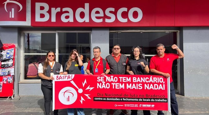 Todas as bases sindicais da Federação dos Trabalhadores em Empresas de Crédito do Centro-Norte (Fetec-CUT/CN) participaram nesta terça-feira 12 de agosto do Dia Nacional de Luta no Bradesco contra o fechamento de agências do banco, o que vem provocando um grande número de demissões e prejudicando clientes e usuários, que enfrentam atendimento cada vez mais precarizado. Veja a galeria de fotos no final do texto.