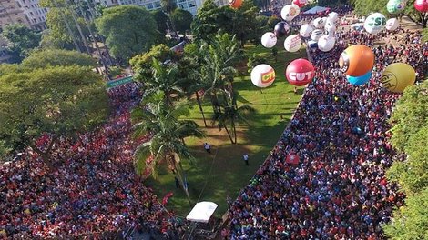 E foi nesse clima de Lula livre que o ex-ministro da Educação, Fernando Haddad, ressaltou ao público presente neste 1º de maio que a prisão de Lula, há mais de um ano na sede da Superintendência da Polícia Federal, em Curitiba, é injusta, é política, é o retrato de um país cuja democracia foi golpeada.