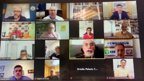 Reunião virtual realizada em janeiro entre os dirigentes sindicais do Brasil e da China