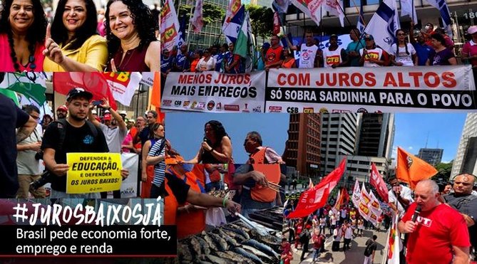 Não foram só as ruas que foram ocupadas para exigir a queda da taxa básica de juros (Selic) praticada pelo BC. Desde as primeiras horas da manhã, várias postagens no Twitter começaram a subir a hashtag #JurosBaixosJá, que alcançou o quarto lugar entre as mais comentadas no Brasil, nesta terça-feira.