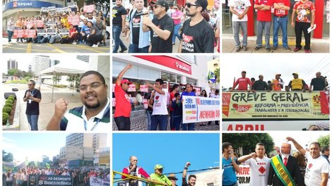 Foi a maior greve geral da história do Brasil. Os trabalhadores de todas as categorias e os movimentos sociais pararam o país de Norte a Sul nesta sexta-feira 28 de abril, em protesto contra a reforma da previdência do governo Temer e contra o fim dos direitos trabalhistas e a aprovação da terceirização total em todas as atividades econômicas, particularmente no sistema financeiro. Os bancários de todo o país, especialmente os da região Centro Norte, tiveram participação destacada na paralisação, convocada pela CUT e demais centrais sindicais, pela Frente Brasil Popular e pela Frente Povo sem Medo.