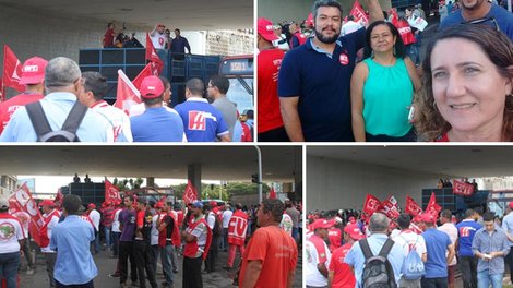 Diretores do Sindicato e da Fetec-CUT/CN participaram do protesto. Houve uma tentativa da Polícia Militar em impedir a manifestação, com uso de violência contra os trabalhadores, que não se intimidaram e prosseguiram firmes na luta contra o projeto que destrói a CLT e representa um verdadeiro retrocesso nos direitos trabalhistas.
