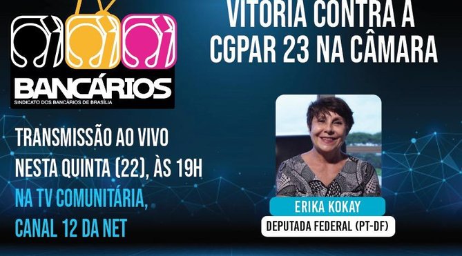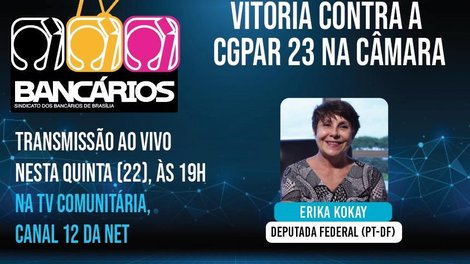 O programa TV Bancários desta quinta-feira (22) recebe a deputada Erika Kokay (PT-DF), empregada da Caixa e ex-presidenta do Sindicato, para falar da mobilização que resultou em vitória dos trabalhadores na votação pela Câmara Federal do Projeto de Decreto Legislativo (PDC) 956/2018, que susta os efeitos da CGPAR 23.
