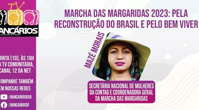 O TV Bancários desta quinta-feira (10) traz os passos da organização da 7ª Marcha das Margaridas 2023, que chega a Brasília na próxima semana, com participação de trabalhadoras rurais oriundas de todas as regiões do país, para ações junto aos poderes e às instituições da República, nos dias 15 e 16 de agosto.