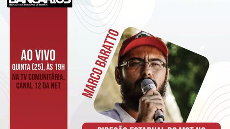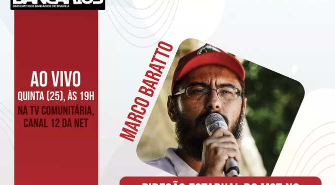 O programa tem como convidado Marco Baratto, membro da Direção Estadual do MST no Distrito Federal e Entorno, e vai ao ar às 19h com transmissão ao vivo pela TV Comunitária de Brasília (canal 12 da Net) e pelas redes sociais do Sindicato.