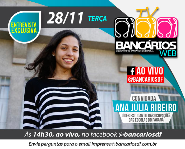 TV Bancários DF entrevista Ana Júlia, líder estudantil das ocupações das escolas do PR, nesta terça (29), às 14h30