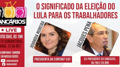 A transmissão ao vivo do TV Bancários desta semana ocorre nesta sexta-feira (4) e tem como tema “O significado da eleição de Lula para os trabalhadores e as perspectivas apontadas a partir da transição de governo”.