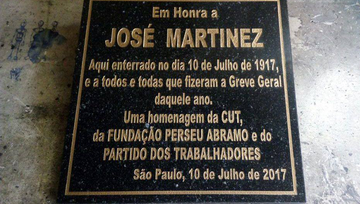 "Estamos fazendo um resgate histórico de um momento de bravura", afirmou o presidente da CUT São Paulo, Douglas Izzo. "Infelizmente, a luta dos trabalhadores continua sendo tratada pelas autoridades policiais e pelo Estado como uma transgressão. Temos muito ainda o que lutar. O que estão apontando para o Brasil é acabar com todo o avanço civilizatório que conseguimos com a luta de José Martinez e outros companheiros", acrescentou Douglas, segurando uma edição fac-símile do jornal A Plebe, lançado em 1917 por inspiração de Edgard Leuenroth, militante anarquista que dá nome a um arquivo mantido pela Universidade Estadual de Campinas (Unicamp).
