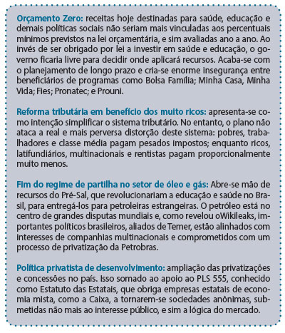 Confira nos quadros as principais propostas do plano “Uma ponte para o futuro” e entenda o que está em jogo hoje no Brasil.